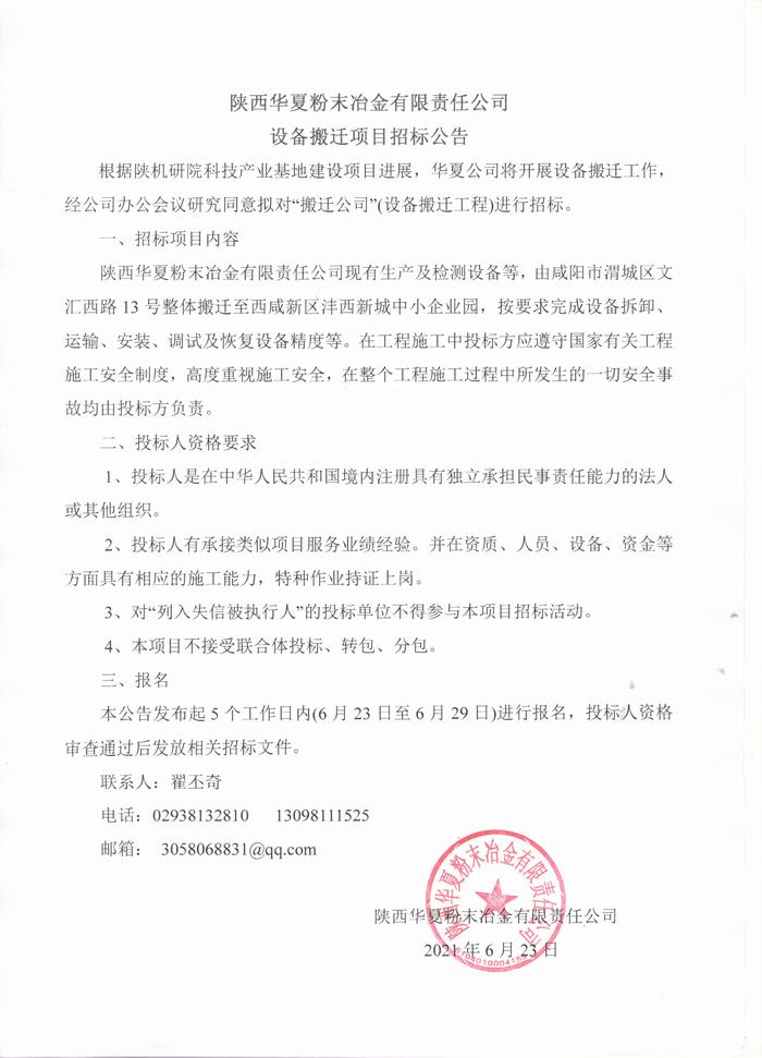 設(shè)備搬遷項(xiàng)目招標(biāo)公告