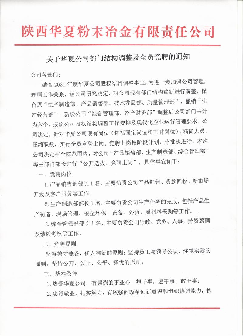 華夏公司部門結(jié)構(gòu)調(diào)整及全員競聘的通知