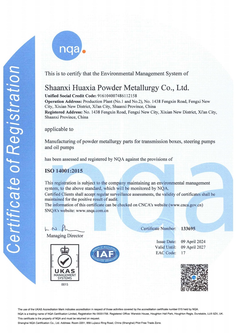 為進(jìn)一步規(guī)范公司業(yè)務(wù)流程,形成標(biāo)準(zhǔn)化經(jīng)營、規(guī)范化管理模式,華夏公司從去年9月底開展導(dǎo)入ISO14001:2015環(huán)境管理體系,于2024年4月9日順利通過認(rèn)證審核并取得證書。